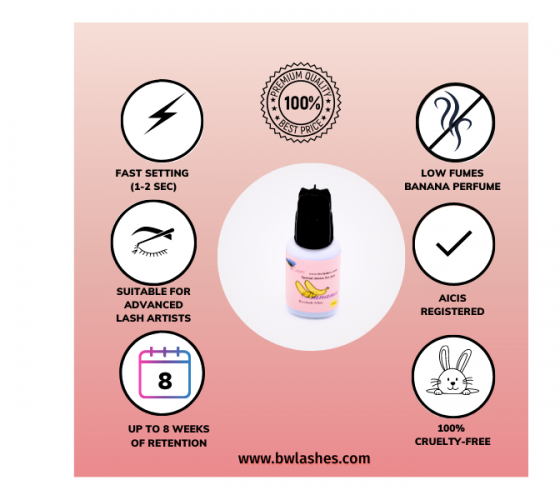 Ensure you use the right amount of glue. Too little will result in poor retention, too much can cause the lashes to stick to each other. Use a small bead of adhesive for classic lashes. When using Premade fans, dip only the bottom 2mm of the fan in the adhesive.